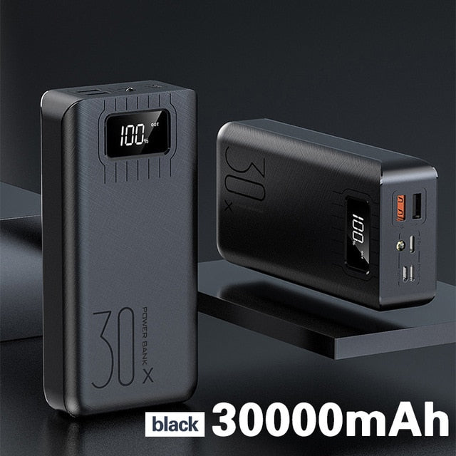 30000mAh Power Bank LED Digital Display Dual USB Fast Charging Power Bank For Samsung iPhone External Battery With LED Light